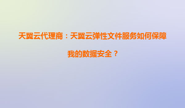 天翼云代理商:天翼云弹性文件服务如何保障我的数据安全?