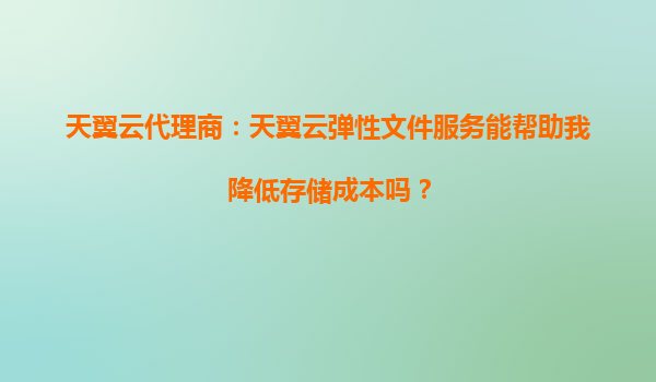 天翼云代理商:天翼云弹性文件服务能帮助我降低存储成本吗?