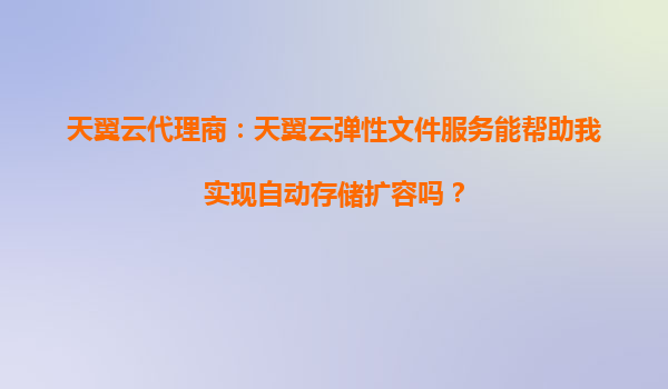 天翼云代理商:天翼云弹性文件服务能帮助我实现自动存储扩容吗?