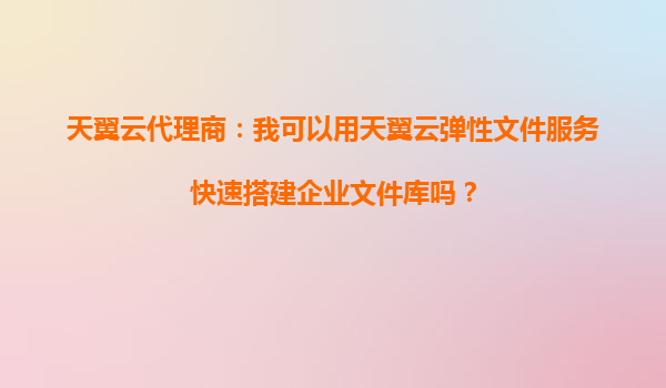 天翼云代理商:我可以用天翼云弹性文件服务快速搭建企业文件库吗?