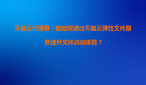 天翼云代理商:如何通过天翼云弹性文件服务提升文件访问体验