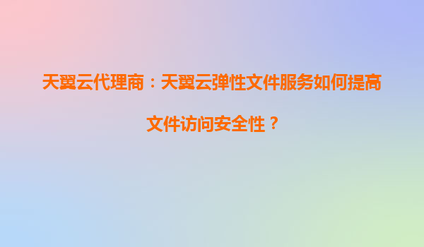 天翼云代理商:天翼云弹性文件服务如何提高文件访问安全性?