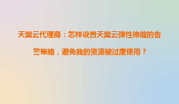 天翼云代理商:如何设置弹性伸缩告警策略,避免资源过度使用