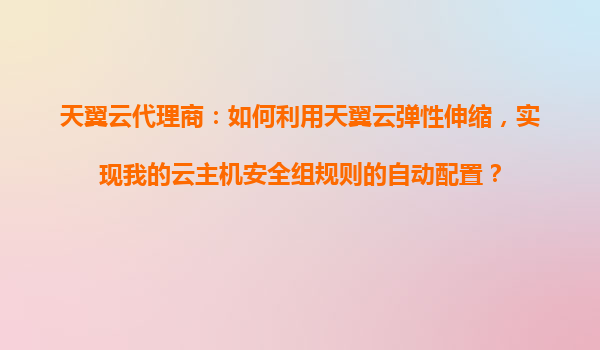 天翼云代理商:如何利用天翼云弹性伸缩,实现我的云主机安全组规则的自动配置?