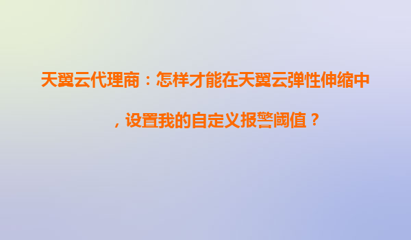 天翼云代理商指南:如何在弹性伸缩中设置自定义报警阈值