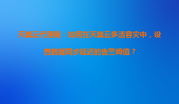 天翼云代理商指南:如何在多活容灾中配置云数据库实时同步
