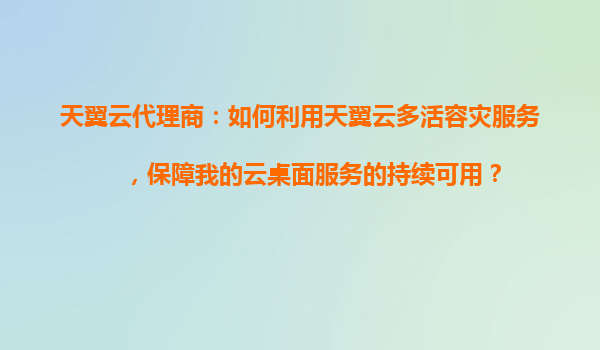 天翼云代理商:如何利用天翼云多活容灾服务,保障我的云桌面服务的持续可用?