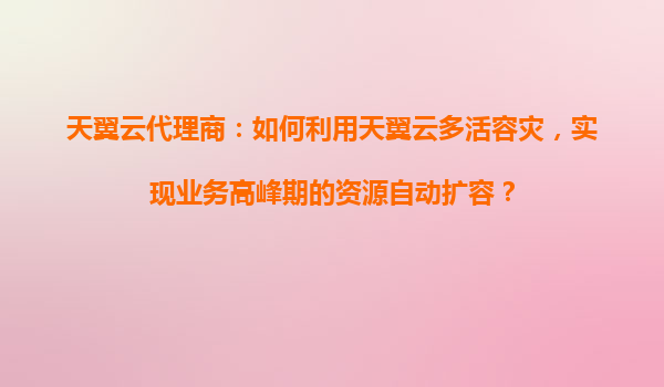 天翼云代理商:如何利用天翼云多活容灾,实现业务高峰期的资源自动扩容?
