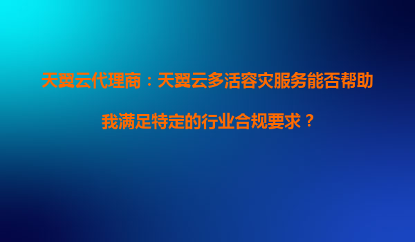 天翼云代理商:天翼云多活容灾服务能否帮助我满足特定的行业合规要求?
