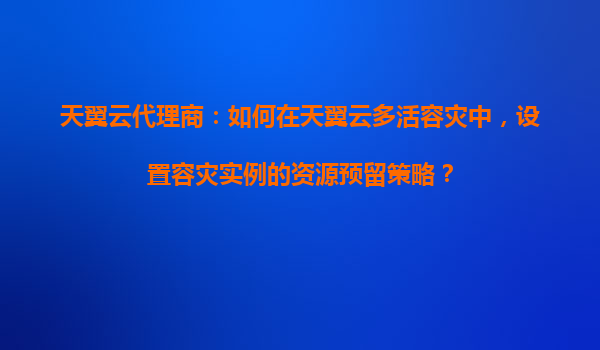 天翼云代理商:如何在天翼云多活容灾中,设置容灾实例的资源预留策略?