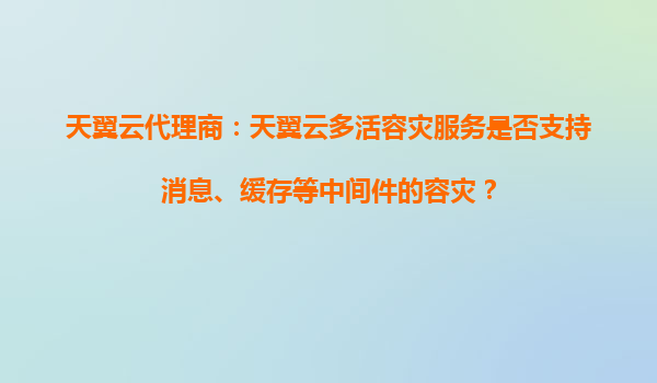 天翼云代理商解析:天翼云多活容灾服务对消息与缓存中间件的容灾支持