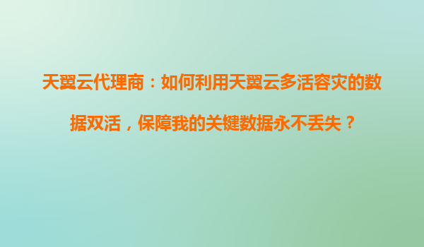 天翼云代理商:如何利用天翼云多活容灾的数据双活,保障我的关键数据永不丢失?