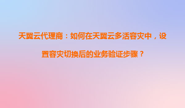 天翼云代理商指南:天翼云多活容灾中的业务验证步骤设置