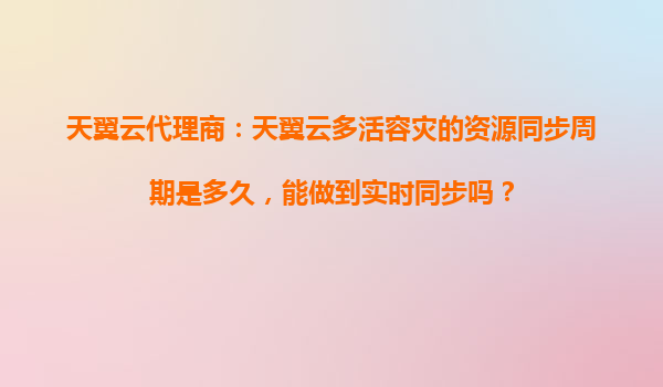 天翼云代理商:天翼云多活容灾的资源同步周期是多久,能做到实时同步吗?