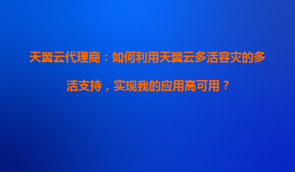 天翼云代理商:如何利用天翼云多活容灾的多活支持,实现我的应用高可用?