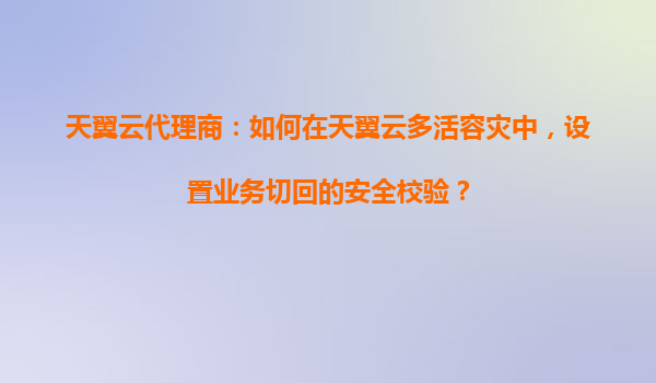 天翼云代理商:如何在天翼云多活容灾中,设置业务切回的安全校验?