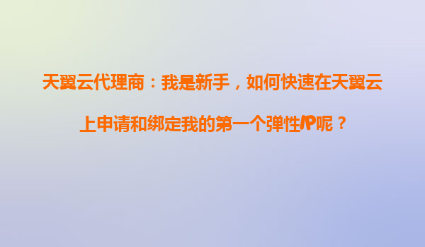 天翼云代理商:我是新手,如何快速在天翼云上申请和绑定我的第一个弹性IP呢?