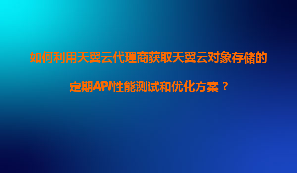 如何利用天翼云代理商获取天翼云对象存储的定期API性能测试和优化方案?
